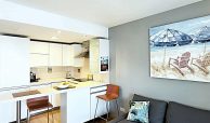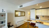 El piso se encuentra en la primera planta de un cuidado edificio residencial con ascensor y sólo 17 unidades en total. Mide unos 48 m², es moderno, luminoso y está listo para entrar a vivir. El salón-comedor con cocina americana crea un ambiente agradable, apoyado por suelos laminados de alta calidad y grandes ventanas de doble acristalamiento. Un balcón extiende el espacio vital al exterior e invita a relajarse.